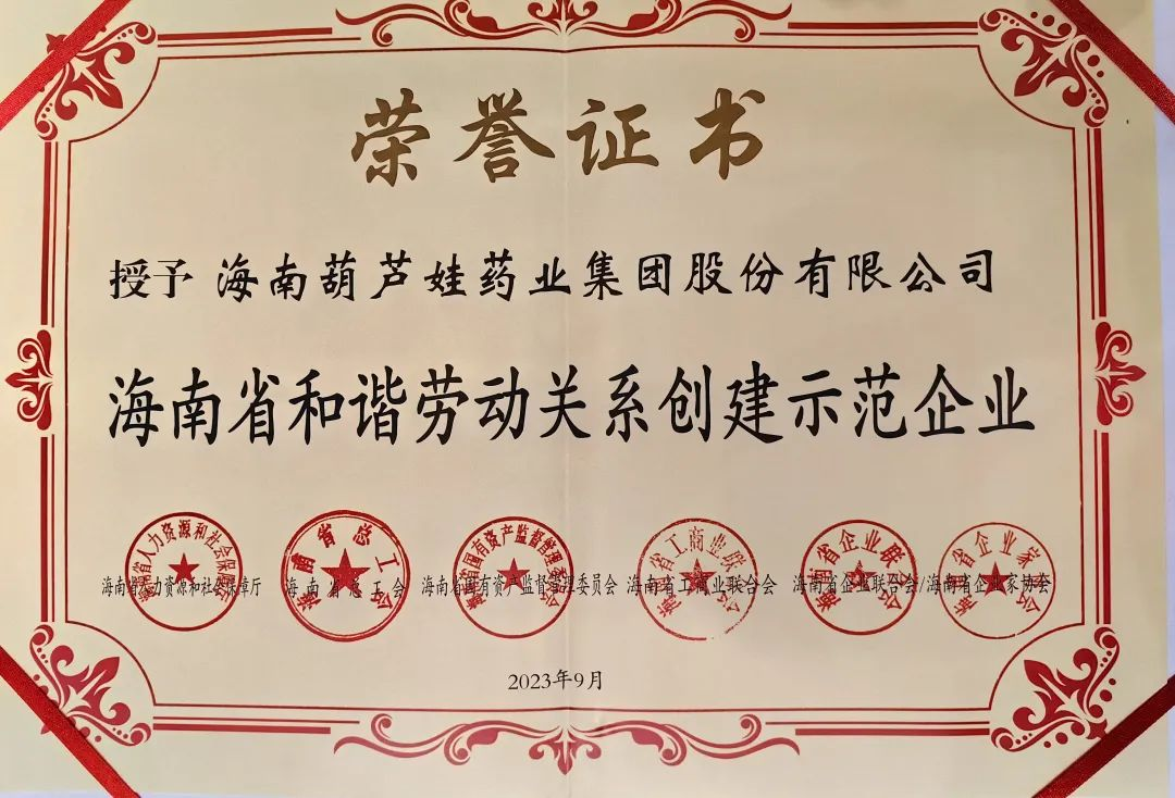 俄罗斯专享会294药业集团获评“海南省和谐劳动关系创建示范企业”